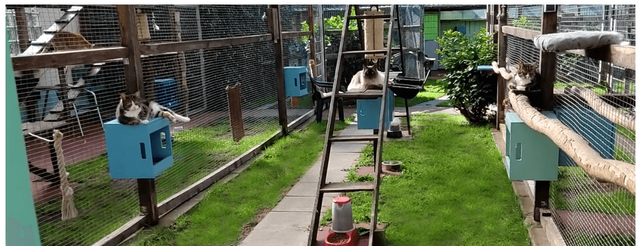 Die Unterbringung erfolgt in Gruppen. Wir haben fünf große Gruppenzimmer mit riesigen Außengehegen zum Spielen und Toben. Die Gruppenräume sind mit Spielgeräten, Kratzbäumen und Kuschelboxen für die Gäste ausgestattet und bieten jederzeit freien Zugang zu den Außenbereichen. Diese sind hälftig Überdacht und komplett eingezäunt und somit vollkommen gesichert. Alle Räume sind vom 1. Oktober bis zum 30. April beheizt.